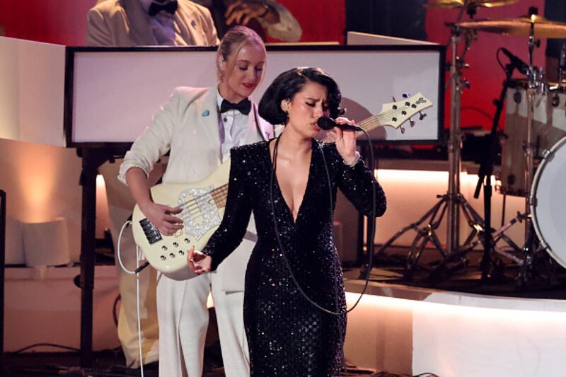 67th GRAMMY Awards - Show LOS ANGELES, CALIFORNIA - FEBRUARY 02: (FOR EDITORIAL USE ONLY) (L-Brittany Howard, Sheryl Crow, St. Vincent, Taylor Goldsmith of Dawes, Brad Paisley and Griffin Goldsmith of Dawes perform onstage during the 67th GRAMMY Awards at Crypto.com Arena on February 02, 2025 in Los Angeles, California. (Photo by Amy Sussman/Getty Images) (Amy Sussman/Getty Images)