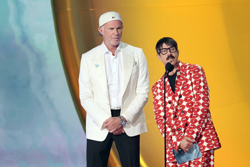 67th GRAMMY Awards - Show LOS ANGELES, CALIFORNIA - FEBRUARY 02: (FOR EDITORIAL USE ONLY) (L-R) Chad Smith and Anthony Kiedis of the Red Hot Chili Peppers present the Best Pop Vocal Album award onstage during the 67th GRAMMY Awards at Crypto.com Arena on February 02, 2025 in Los Angeles, California. (Photo by Amy Sussman/Getty Images) (Amy Sussman/Getty Images)