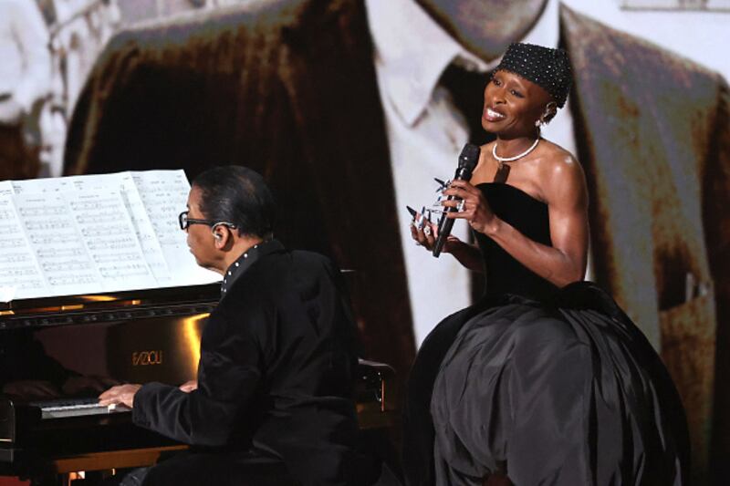 67th GRAMMY Awards - Show LOS ANGELES, CALIFORNIA - FEBRUARY 02: (FOR EDITORIAL USE ONLY) Cynthia Ervio and Herbie Hancock perform onstage during the 67th GRAMMY Awards at Crypto.com Arena on February 02, 2025 in Los Angeles, California. (Photo by Amy Sussman/Getty Images) (Amy Sussman/Getty Images)