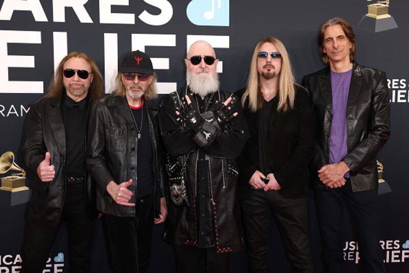67th Annual GRAMMY Awards - Arrivals LOS ANGELES, CALIFORNIA - FEBRUARY 02: (L-R) Ian Hill, Glenn Tipton, Rob Halford, Richie Faulkner and Scott Travis of Judas Priest attend the 67th Annual GRAMMY Awards on February 02, 2025 in Los Angeles, California. (Photo by Matt Winkelmeyer/Getty Images for The Recording Academy) (Matt Winkelmeyer/Getty Images for The Recording A)
