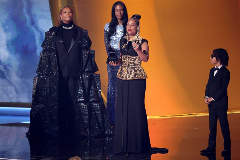 67th GRAMMY Awards - Show LOS ANGELES, CALIFORNIA - FEBRUARY 02: (FOR EDITORIAL USE ONLY) (L-R) Queen Latifah, Alicia Keys, and Genesis Ali Dean are seen onstage during the 67th GRAMMY Awards at Crypto.com Arena on February 02, 2025 in Los Angeles, California. (Photo by Amy Sussman/Getty Images) (Amy Sussman/Getty Images)