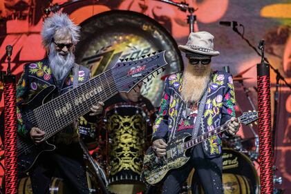 ZZ Top Perform At Viejas Casino ALPINE, CALIFORNIA - NOVEMBER 02: Elwood Francis (L) and Billy Gibbons of ZZ Top perform on stage at Viejas Casino & Resort on November 02, 2025 in Alpine, California. (Photo by Daniel Knighton/Getty Images) (Daniel Knighton/Getty Images)
