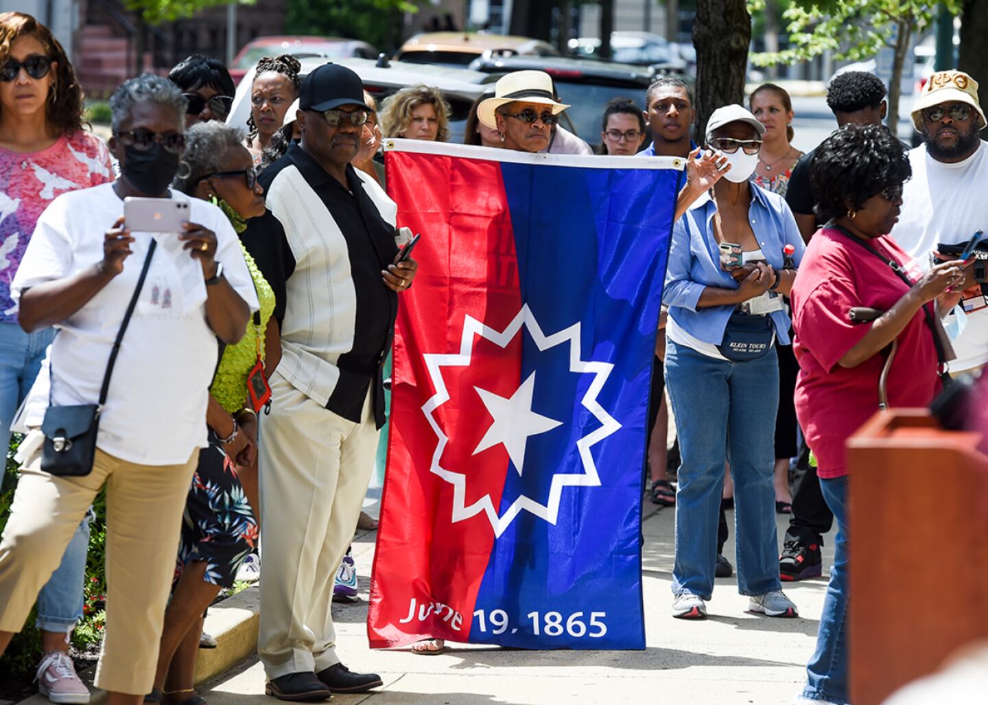 Juneteenth celebrants in Galveston, Texas, listen to a public reading of the Emancipation Proclamation to mark the holiday. Galveston still holds annual public readings of General Order No. 3 today. Back in 1865, Major General Gordon Granger read the order to the people of Galveston, stating, "The people of Texas are informed that, in accordance with a proclamation from the executive of the United States, all slaves are free. This involves an absolute equality of personal rights and rights of property between former masters and slaves."