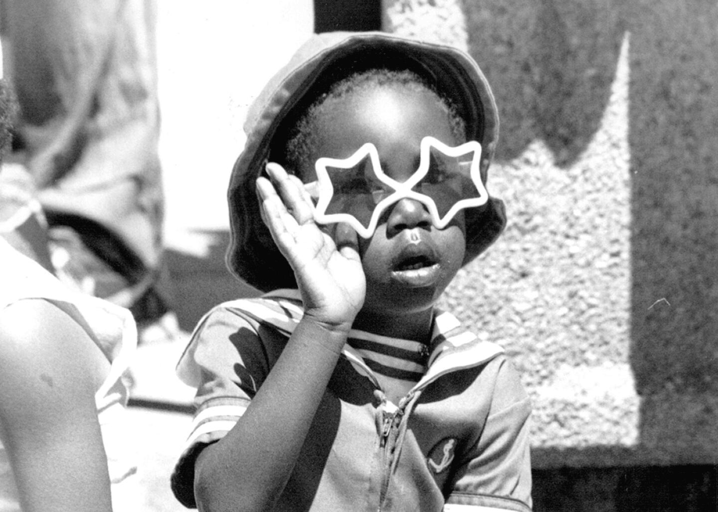 A young boy watches a Juneteenth parade pass by. Early Juneteenth celebrations would not have been held on public land in this way, particularly in the South, where white authorities used Jim Crow laws to suppress celebrations.