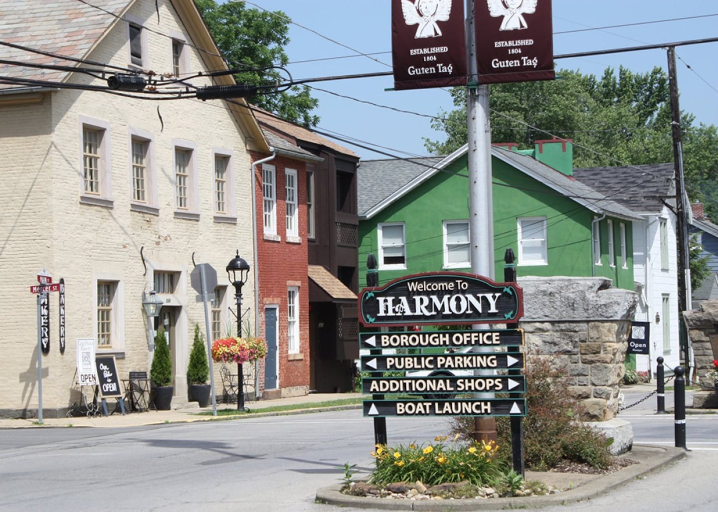 Start in the town square, where the Harmonists laid out their most important buildings. The original church, storehouse, and brick homes still frame the square. Pop into the Harmony Museum, which displays artifacts from the Harmonists, Mennonites, and later residents.