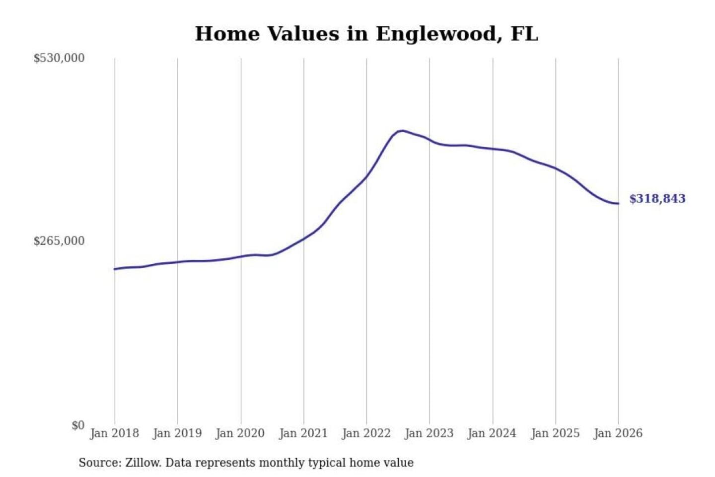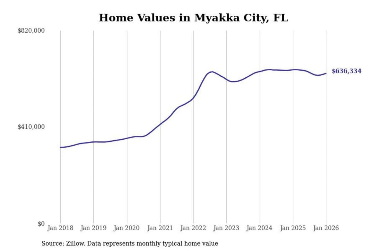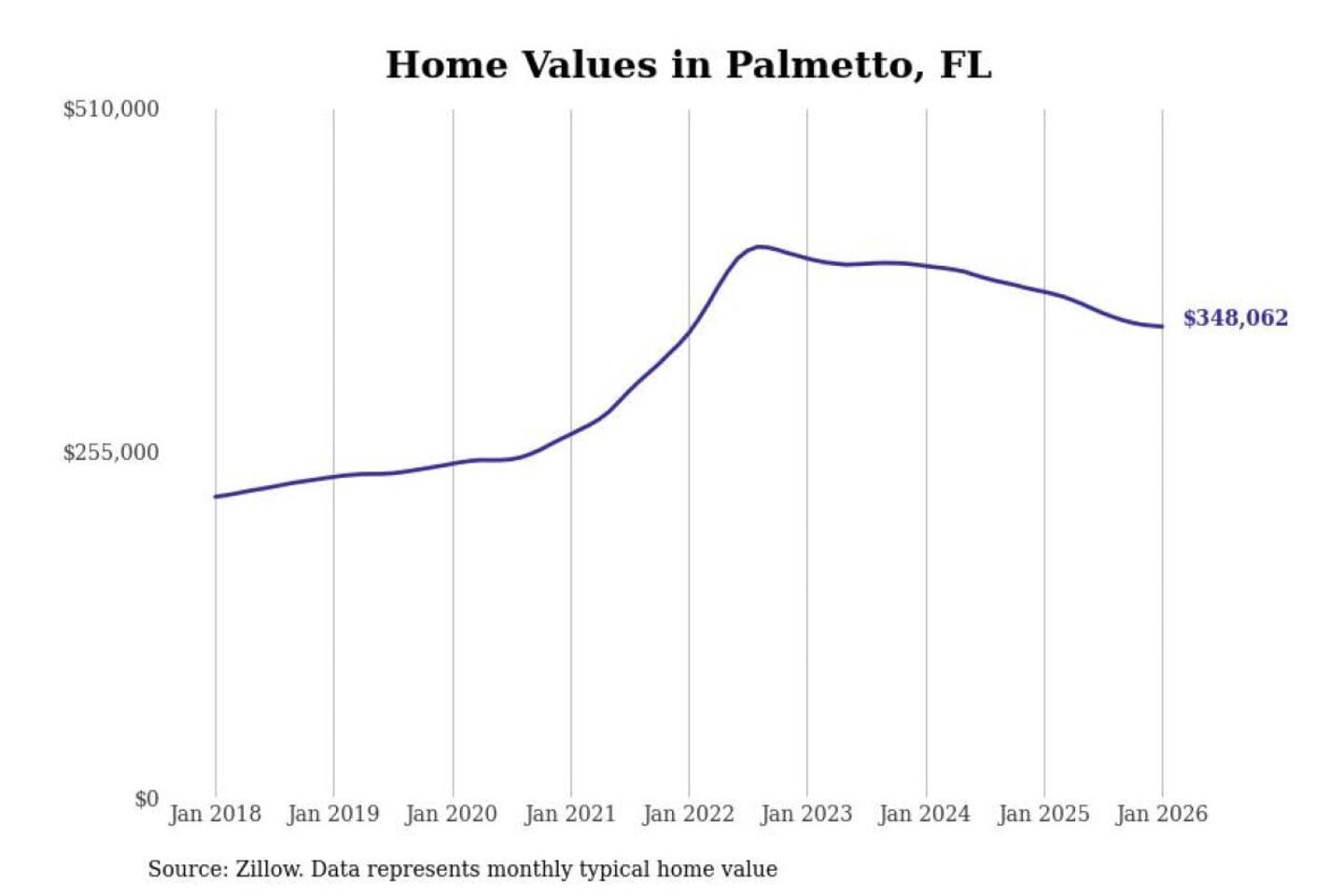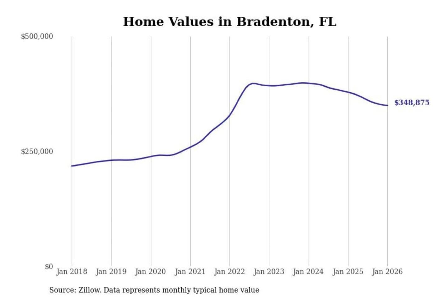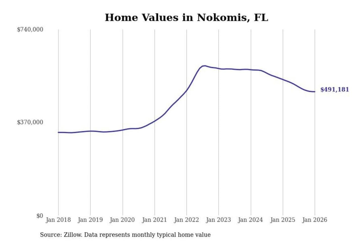 Stacker compiled a list of cities with the most expensive homes in the North Port-Sarasota-Bradenton, FL metro area using data from Zillow. Charts show the monthly typical home value since January 2018.