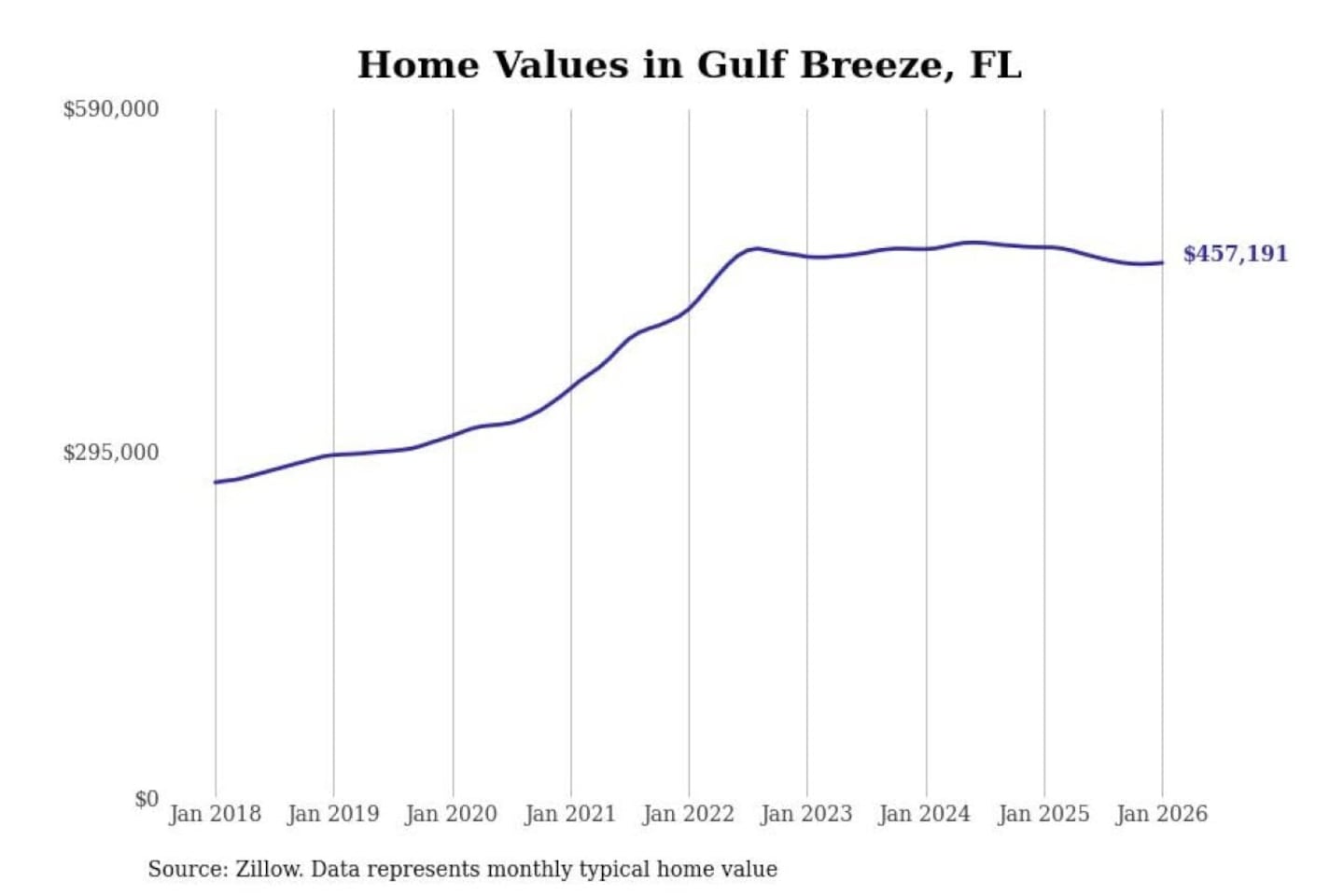 Stacker compiled a list of cities with the most expensive homes in the Pensacola-Ferry Pass-Brent, FL metro area using data from Zillow. Charts show the monthly typical home value since January 2018.