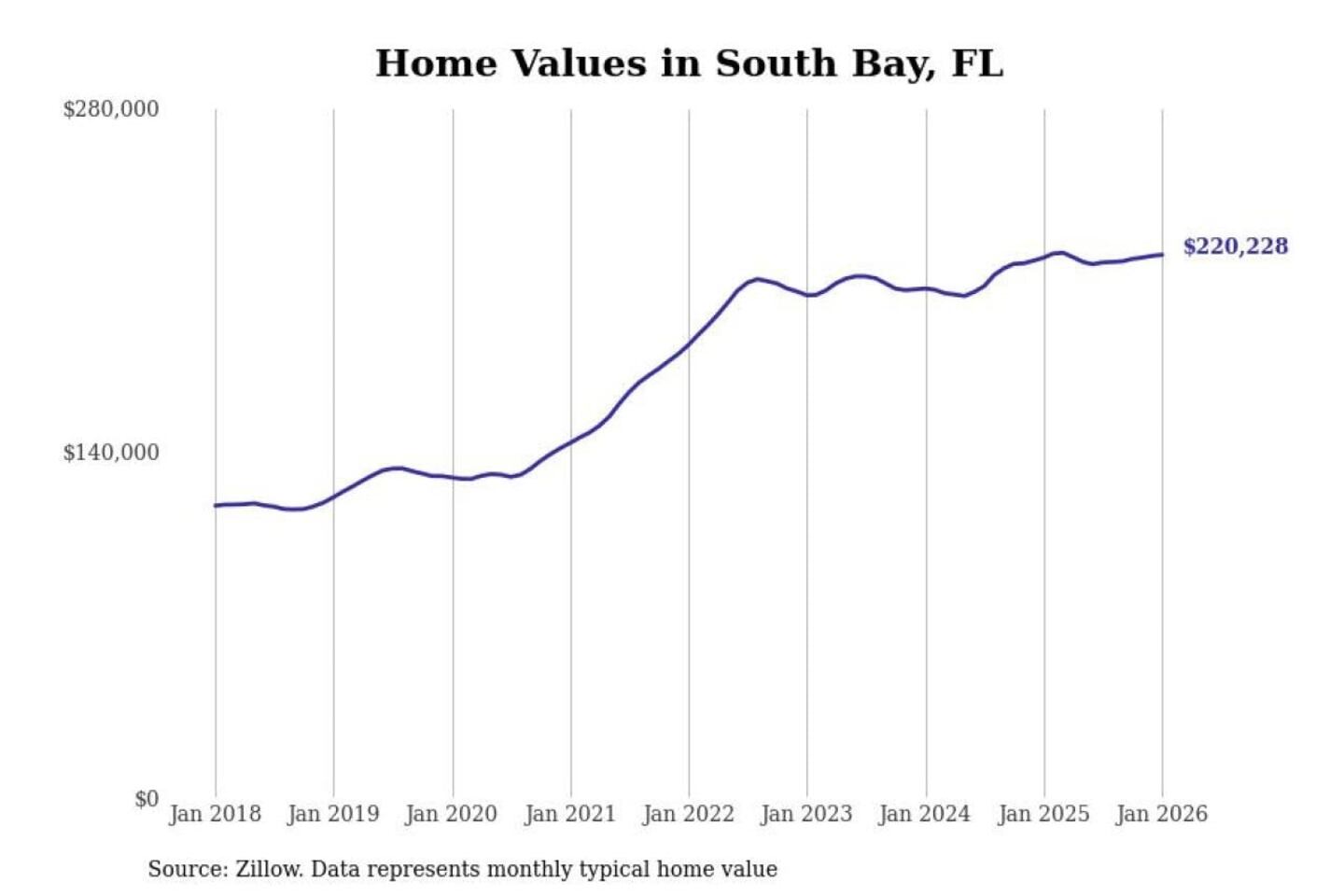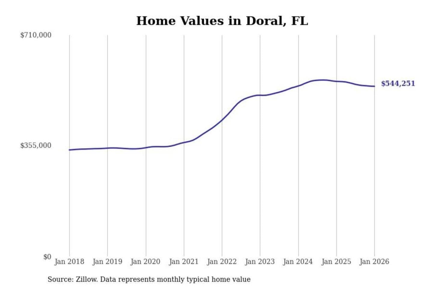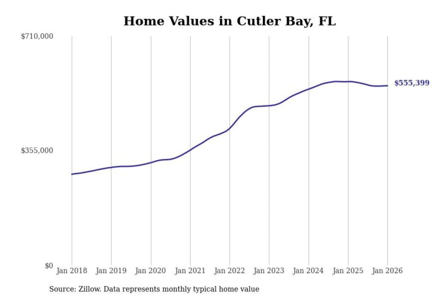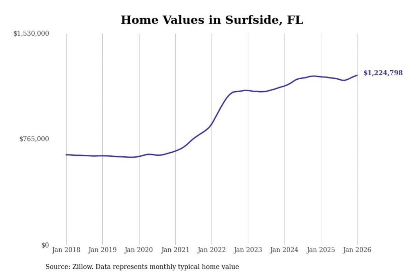 Stacker compiled a list of cities with the most expensive homes in the Miami-Fort Lauderdale-Pompano Beach, FL metro area using data from Zillow. Charts show the monthly typical home value since January 2018.