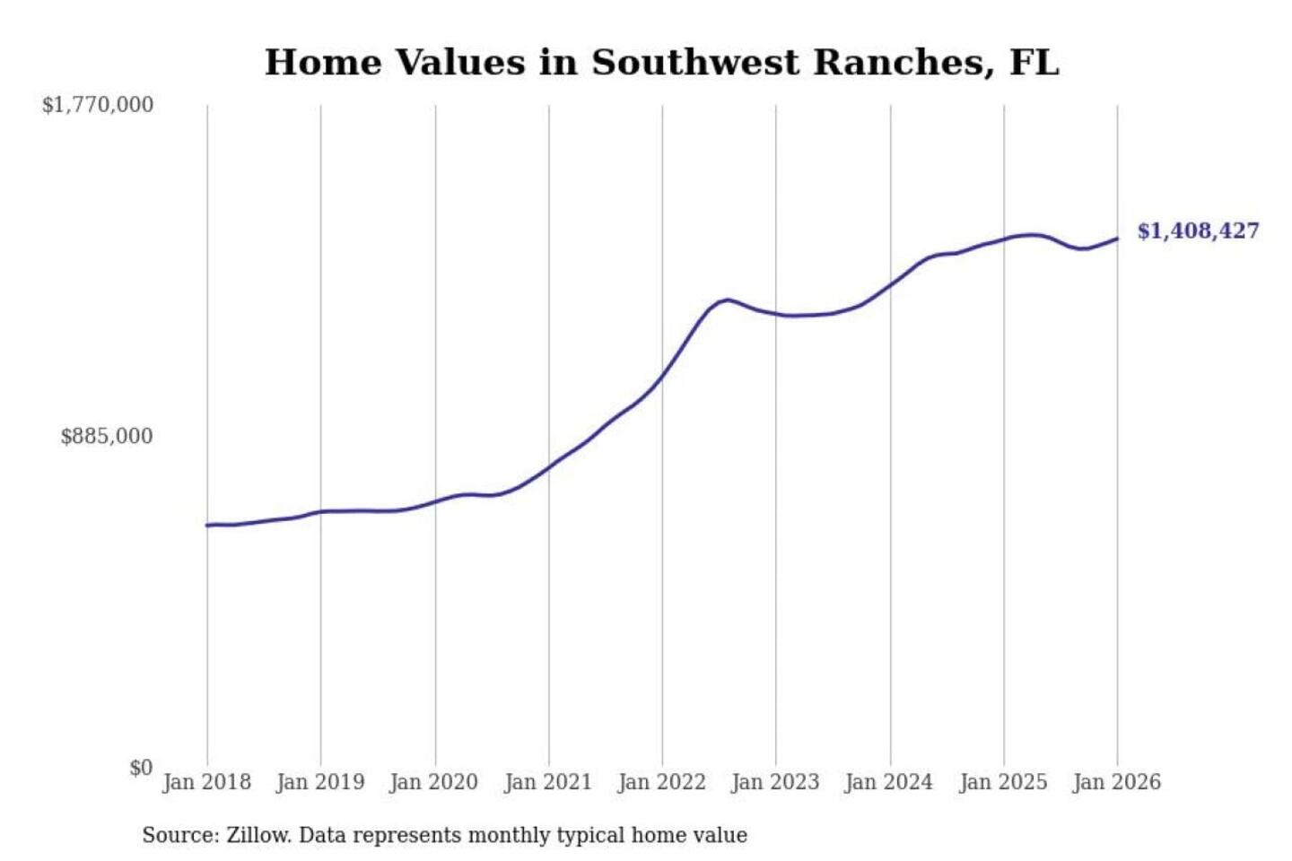 - Typical home value: $1,408,427 (#13 most expensive city in metro)