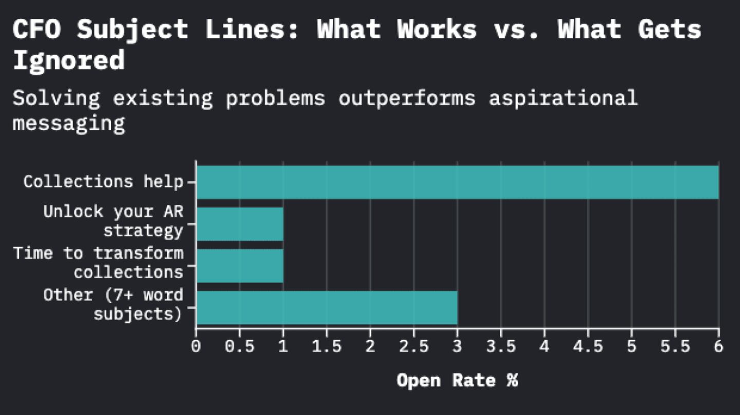 Finally, it reads like something they’d send internally. It mirrors the kind of language that shows up in subject lines between a CFO and their accounts receivable or finance operations team. That familiarity builds credibility — and drives opens.