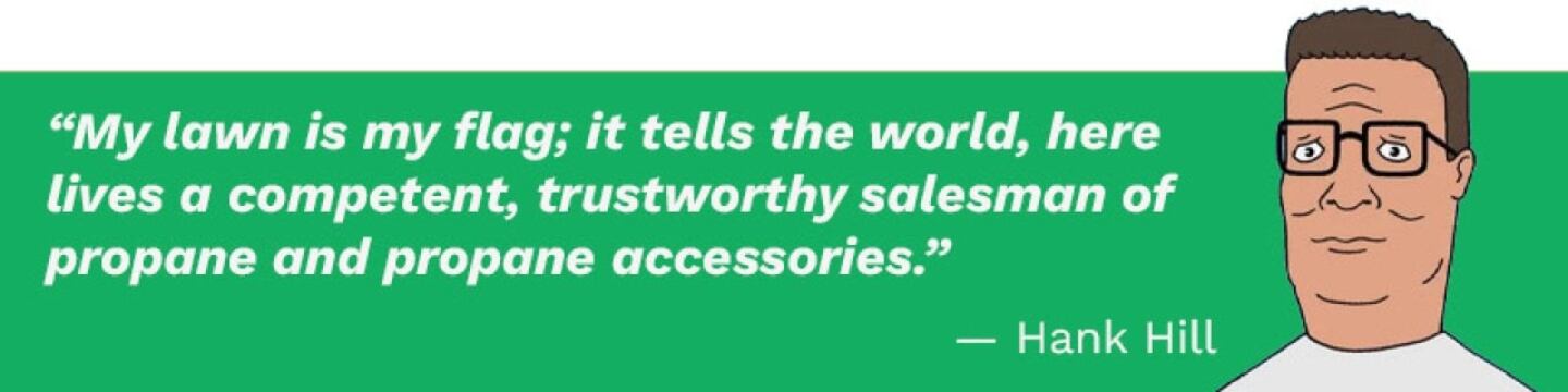 If you want a Hank-level lawn but don’t have the confidence — or desire — to do it yourself, hiring a local lawn care pro is the way to go. Because, as Hank might say, “A well-maintained lawn isn’t just grass, it’s a way of life.”
