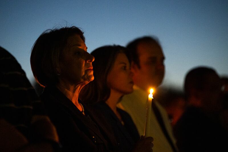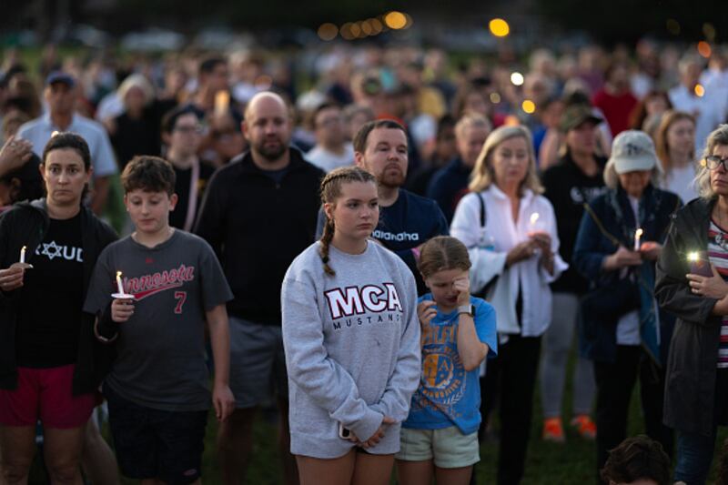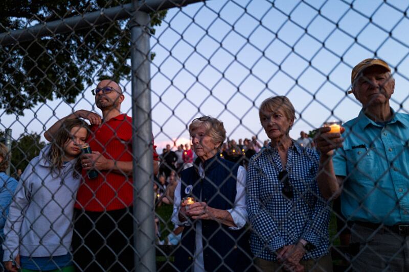 Vigil MINNEAPOLIS, MINNESOTA - AUGUST 27: People attend a vigil at Lynnhurst Park to mourn the dead and pray for the wounded after a gunman opened fire on students at Annunciation Catholic School on August 27, 2025 in Minneapolis, Minnesota. According to Minneapolis Police, the gunman fired through the windows of the Annunciation Church while worshippers were sitting in pews during a Catholic school Mass, killing two children and injuring at least 17 others. The gunman died at the scene from a self-inflicted gunshot wound, according to police. (Photo by Scott Olson/Getty Images) (Scott Olson/Getty Images)
