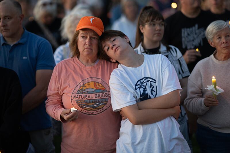 Vigil MINNEAPOLIS, MINNESOTA - AUGUST 27: People attend a vigil following a mass shooting at Annunciation Catholic School on August 27, 2025 in Minneapolis, Minnesota. According to Minneapolis Police, a gunman fired through the windows of the Annunciation Church at worshippers sitting in pews during a Catholic school Mass, killing two children and injuring at least 17 others. The gunman reportedly died at the scene from a self-inflicted gunshot wound, according to police. (Photo by Stephen Maturen/Getty Images) (Stephen Maturen/Getty Images)