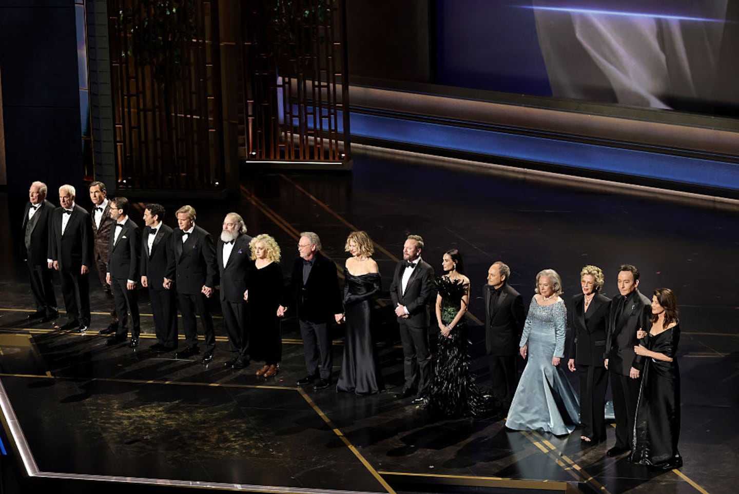 Billy Crystal was alone to start the tribute to Rob Reiner stood shoulder to shoulder to pay tribute to Reiner and his wife, Michele Singer Reiner, who were found dead in their home in December. The “When Harry Met Sally” actor shared, “I met Mr. Rob Reiner when I was cast as his best friend in an episode of ‘All in the Family’ and it went so well that Rob said, ‘It was fun playing your best friend. Why don’t we keep it going?’ And it was a thrill to see him evolve from a great comic actor to a master storyteller,” Variety reported. He ended his tribute with “And for us who had the privilege of working with and knowing him and loving him, all we can say is, buddy, what fun we had storming the castle,” referring to “The Princess Bride.” When he was done speaking, several stars from the gamut of movies made by Rob Reiner stood behind him.