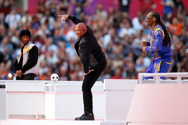 INGLEWOOD, Calif. — Legendary rap and hip-hop performers Dr. Dre, Snoop Dogg, Kendrick Lamar, Eminem and Mary J. Blige took the stage for Super Bowl LVI’s halftime show Sunday and lived up to their promise to “open more doors” for future artists.