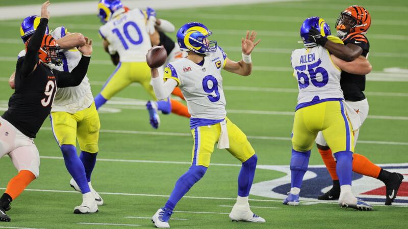Super Bowl LVI Matthew Stafford throws a pass during the third quarter of Super Bowl LVI. (Andy Lyons/Getty Images)