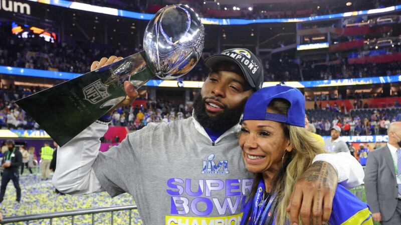 Super Bowl LVI Odell Beckham Jr. had to leave Sunday's game with an injury, but he still caught a touchdown pass and got to hold the Vince Lombardi Trophy. (Kevin C. Cox/Getty Images)