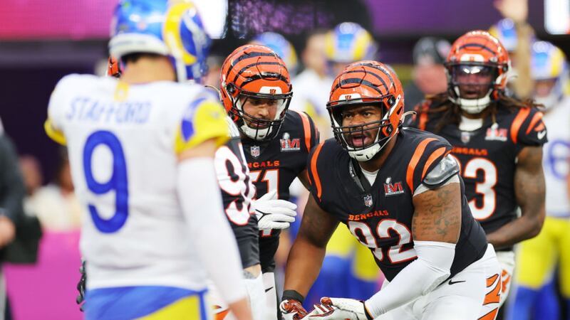 Super Bowl LVI B.J. Hill (92) of the Cincinnati Bengals celebrates after a defensive stop. (Kevin C. Cox/Getty Images)